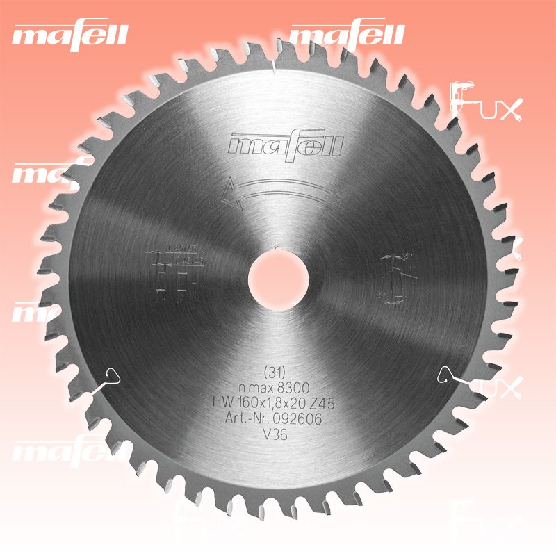 Zu "Sägeblätter" von Mafell Mafell KSB-L160 Sägeblatt 160 mm Bestell- und Artikelnummer: 092606 Das Sägeblatt ist speziell für die Anwendungen einer Mafell Tauchsäge abgestimmt. Dadurch verbessert sich spürbar die Schnitt- und Kantenqualität, es verringert sich die Schnittfuge und die Akku-Laufzeit wird deutlich verlängert. Einsatzgebiet Für Trespa, HPL Schichtstoffplatten und Laminate Vorteile Die einzigartige Kombination aus schmaler Schnittfuge und optimaler Hartmetall-Legierung sorgt für längere Akkulaufzeit und deutlich längere Material-Standzeit. Technische Daten Durchmesser 160 mm Sägeblattaufnahme 20 mm Stammblattdicke 1.2 mm Schnittbreite 1.8 mm Zähnezahl 46 Zahngeometrie WZ/FA Zähneschliff 5 ° Gewicht 0.284 kg Standard-Ausrüstung Verkaufseinheit 1 Stk. Listenpreis CHF 78.50 Fuxpreis CHF 71.00 inkl. 8.1% MwSt Versand CHF 15.00 Kein Grauimport! Produkt bestellen Verkaufseinheit 1 Stk. 1 Stück 2 Stück 3 Stück 4 Stück 5 Stück 6 Stück 7 Stück 8 Stück 9 Stück 10 Stück 11 Stück 12 Stück 13 Stück 14 Stück 15 Stück 16 Stück 17 Stück 18 Stück 19 Stück 20 Stück 21 Stück 22 Stück 23 Stück 24 Stück 25 Stück 26 Stück 27 Stück 28 Stück 29 Stück 30 Stück 31 Stück 32 Stück 33 Stück 34 Stück 35 Stück 36 Stück 37 Stück 38 Stück 39 Stück 40 Stück 41 Stück 42 Stück 43 Stück 44 Stück 45 Stück 46 Stück 47 Stück 48 Stück 49 Stück 50 Stück Alle Angaben ohne Gewähr und solange Vorrat reicht!Wiederverkäufer werden? Produkt als PDF NEUHEITAKTION 10%