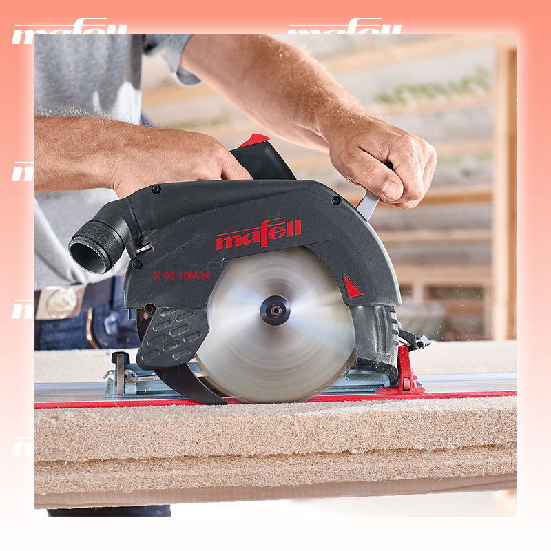 Zu "Akku Handkreissäge" von Mafell Mafell Akku-Handkreissäge K 65 18M bl PURE im T-MAX Bestell- und Artikelnummer: 1P0386 Mit der kompakten und extrem leistungsfähigen Handkreissäge K 65 18M bl erzielen Sie Schnitte bis zu 67 Millimetern Schnitttiefe in absoluter Topqualität. Und das mit dem besten Leistungsgewicht ihrer Klasse. Sie bietet alle Gewichts- und Handhabungsvorteile einer 55er-Maschine mit der Schnitttiefe einer 65er-Maschine. Es ist kein Abschrauben des Spaltkeils mehr nötig - der FLIPPKEIL bietet Ihnen beim Eintauchen optimalen Benutzerkomfort und Anwendersicherheit. Jetzt haben geballte Power und hohe Drehmomente einen Namen: CUprex der Hochleistungsmotor mit leistungsoptimierter Digital-Elektronik und neu entwickelter Steuertechnik. Dabei kann die Drehzahl stufenlos auf unterschiedliche Materialien und Anwendungen eingestellt werden. Einsatzgebiet Quer- und Längsschnitte Schrägschnitte / Schifterschnitte bis 45° Kervenschnitte Tauchschnitte Abgratungen, Auskehlungen Materialeinsatz z. B.: Vollholz, Plattenwerkstoffe, Dämmstoff, Türen, Arbeitsplatten, Innenausbau und Renovierungen Vorteile Gesundes Arbeitsumfeld - durch einen sauberen Arbeitsplatz und eine freie Sicht auf das Werkstück dank optimaler Staubabsaugung mit den Absauggeräten von MAFELL. Per Voreinzug lässt sich die Pendelhaube bequem und einfach bedienen und sorgt bei Tauch- und Schrägschnitten für Komfort und Sicherheit. Helle LED-Lichter sorgen für eine großflächige Ausleuchtung des Arbeitsbereichs. Mit der Nut in der Grundplatte können die im Sonderzubehör erhältlichen Führungseinrichtungen als Kappschienen-Säge verwendet werden. OHNE AKKUS UND LADEGERÄT Technische Daten Schnitttiefe 0 – 67 mm Schnitttiefe bei 45° 0 – 53 mm Schwenkbereich 0 – 45 ° Nennleerlaufdrehzahl 4450 1/min Gewicht 4,4 kg Standard-Ausrüstung Führungseinrichtung M, maximale Schnittlänge 400 mm 208170 Führungseinrichtungstasche TZ-FT800 095258 Sägeblatt-HM 185 x 1,2/1,8 x 20 mm, Z 16, WZ, Battery ideal, für Längsschnitte in Holz; Best. Nr. 092494 Sechskantschlüssel 5 mm; Best. Nr. 093034 Parallelanschlag Spänebeutel; Best. Nr. 206921 Transport- und Aufbewahrungsbox T-MAX Geliefert im Koffer Fuxpreis CHF 1'056.00 inkl. 8.1% MwSt Versand CHF 15.00 Kein Grauimport! Produkt bestellen 1 Stück 2 Stück 3 Stück 4 Stück 5 Stück 6 Stück 7 Stück 8 Stück 9 Stück 10 Stück Alle Angaben ohne Gewähr und solange Vorrat reicht!Wiederverkäufer werden? Produkt als PDF AKTION