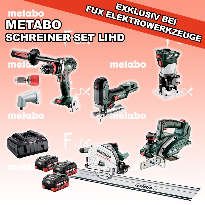 Heute auf dieses Produkt 40% Rabatt! Zu "Schreiner Set" von Metabo FULL Service: 36 Monate zum Nulltarif für Sie! Weitere Infos zum FULL Service Dieses Produkt ist CAS kompatibel! Weitere Infos zu CAS Black Fuxday Aktionen FUX SPECIAL EXKLUSIV BEI FUX Metabo Schreiner Set 4 LiHD Bestell- und Artikelnummer: Schreiner Set 4 LiHD ST 18 LT 130 BL Akku-StichsägeAkkuspannung 18 V Hubzahl 1000-3.500 /min Gewicht ohne Akkupack 1.5 kgInfos BS 18 LTX BL Q I Akku-BohrschrauberAkkuspannung 18 V Drehzahl 0-550 / 0-2000 U/min Drehmoment hart / weich 130 / 65 Nm Gewicht (mit Akkupack) 2.3 kgInfos FMV 18 LTX BL 8 Akku Kantenfräse Akkuspannung 18 V Leerlaufdrehzahl 4.800 - 29.000 /min Spannbohrung der Spannzange 6 / 8 mmInfos KT 18 LTX 66 BL Akku TauchkreissägeAkkuspannung 18 V Schnitt-Tiefe bei 90° 0-66 mm Sägeblatt 165 mm Gewicht 5.3 kgInfos HO 18 LTX 20-82 Akku-Einhand-HobelAkkuspannung 18 V Hobelbreite 82 mm Spanabnahme einstellbar 0-2 mm Gewicht 3.5 KgInfos FS 160 FührungsschieneGesamtlänge 1600 mmInfos 3 x 18 V, 5.5 Ah, LiHD Akkupack18 V 5.5 Ah ( LiHD Akkus ) Infos ASC 145, 12 - 36 V "Air Cooled" LadegerätZum Aufladen aller Li-Power Schiebesitz-Akkupacks (12 V - 36 V). Ladestrom 8.0 AInfos Schnellwechselbithalter »Quick«Schnellwechselbithalter »Quick« Geeignet für alle Metabo "Quick" Maschinen Bits mit 1/4 "Außensechskantantrieb Infos Schnellwechselwinkeladapter »Quick«Metabo "Quick" Maschinen mit Spannzange Ø 43 mm Magnetischer Bithalter mit 1/4 "(6,35 mm) SechskantschaftInfos Ergattere dir einen zweiten Akku bei der Registration auf metabo.ch Alle Produkte dieser Aktion anzeigen Standard-Ausrüstung In diesem Set enthalten: ST 18 LT 130 BL Akku-Stichsäge BS 18 LTX BL Q I Akku-Bohrschrauber FMV 18 LTX BL 8 Akku Kantenfräse KT 18 LTX 66 BL Akku Tauchkreissäge HO 18 LTX 20-82 Akku-Einhand-Hobel FS 160 Führungsschiene 3 x 18 V, 5.5 Ah, LiHD Akkupack ASC 145, 12 - 36 V "Air Cooled" Ladegerät Schnellwechselbithalter »Quick« Schnellwechselwinkeladapter »Quick« Zubehör Verbrauchsmaterial Listenpreis CHF 2'521.50 Fuxpreis CHF 1'513.00 inkl. 8.1% MwSt, inkl vRG Versand CHF 40.00 Kein Grauimport! Produkt bestellen 1 Stück 2 Stück 3 Stück 4 Stück 5 Stück 6 Stück 7 Stück 8 Stück 9 Stück 10 Stück Alle Angaben ohne Gewähr und solange Vorrat reicht!Wiederverkäufer werden? Produkt als PDFVideo LiHD 1Video LiHD 2 AKTION 40%
