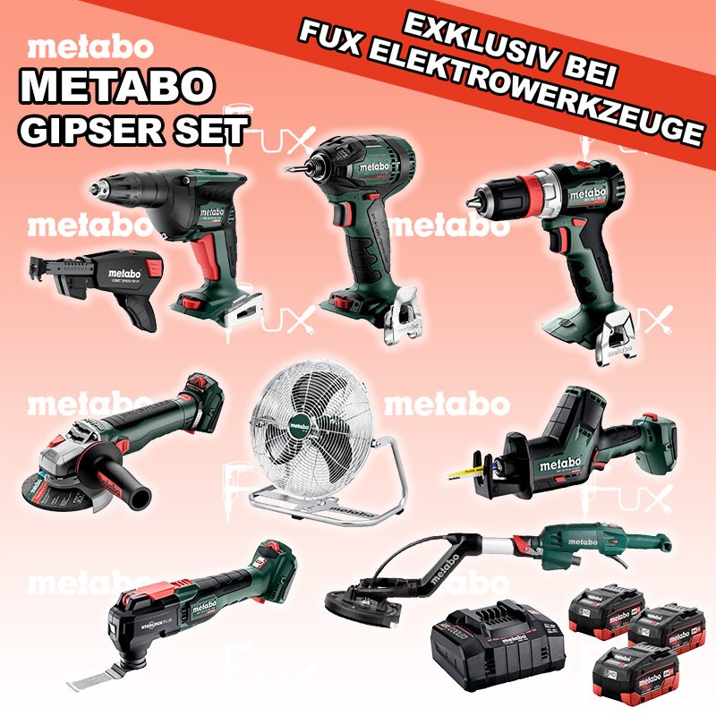Zu "Gipser Set" von Metabo FUX SPECIAL EXKLUSIV BEI FUX Metabo Gipser Set 11 Bestell- und Artikelnummer: Gipser Set 11 FULL Service: 36 Monate zum Nulltarif für Sie! Weitere Infos zum FULL Service BS 18 L BL Q Akku-BohrschrauberAkkuspannung 18 V Drehzahl 0 - 500 / 0 - 1700 /min Drehmoment hart / weich 60 / 28 Nm Gewicht (mit Akkupack) 1.3 kgInfos TBS 18 LTX BL 5000 Akku-TrockenbauschrauberAkkuspannung 18 V Leerlaufdrehzahl 0 - 5.000 /min Max. Drehmoment weich 6 Nm Gewicht mit Akkupack 1,3 kgInfos SSD 18 LTX 200 BL Akku-Schlagschrauber Akkuspannung 18 V Anziehdrehmoment 200 Nm Werkzeugaufnahme 1/4" Gewicht 1.3 kgInfos WVB 18 LT BL 11-125 Quick Akku-WinkelschleiferAkkuspannung 18 V Drehzahl 2.800 - 10.000 / min Ø 125 mm Scheiben Gewicht (mit Akkupack) 2.5 kgInfos SSE 18 LTX BL Compact Akku-SäbelsägeAkkuspannung 18 V Hubzahl 0-3000 min-1 Hublängen 16 mm Gewicht (mit Akkupack) 1.8 kgInfos MT 18 LTX BL QSL Akku-Multitool Akkuspannung 18 V Schwingzahl bei Leerlauf 8.000 - 20.000 /min Schleifplatte, Maß Eck zu Eck 93 mm Gewicht 1.7 kgInfos AV 18 Akku-VentilatorAkkuspannung 18 V Max. Luftgeschwindigkeit 3,8 m/s Flügeldurchmesser 355 mm Gewicht (mit Akkupack) 1,2 kgInfos LSV 5-225 Comfort LanghalsschleiferLeistungsaufnahme 500 Watt Durchmesser Schleifteller 225 mm Leerlaufdrehzahl 1000 - 1650 min-1 Gewicht 4.5 kgInfos 3 x 18 V, 5.5 Ah, LiHD Akkupack18 V 5.5 Ah ( LiHD Akkus ) Infos ASC 145, 12 - 36 V "Air Cooled" LadegerätZum Aufladen aller Li-Power Schiebesitz-Akkupacks (12 V - 36 V). Ladestrom 8.0 AInfos Schrauber-Magazin Speed Fix 57Robustes Schrauber-Magazin geeignet für TBS 18 LTX 5000 und HBS 18 LTX 3000Infos Registriere die in diesem Set vorhandenen Metabo Maschinen auf metabo.ch, und ergattere dir bis zu 5 Gratis Akkus!Zusätzlich offerieren wir zu diesem Set einen Gratis Akku! Standard-Ausrüstung In diesem Set enthalten: BS 18 L BL Q Akku-Bohrschrauber TBS 18 LTX BL 5000 Akku-Trockenbauschrauber SSD 18 LTX 200 BL Akku-Schlagschrauber WVB 18 LT BL 11-125 Quick Akku-Winkelschleifer SSE 18 LTX BL Compact Akku-Säbelsäge MT 18 LTX BL QSL Akku-Multitool AV 18 Akku-Ventilator LSV 5-225 Comfort Langhalsschleifer 3 x 18 V, 5.5 Ah, LiHD Akkupack ASC 145, 12 - 36 V "Air Cooled" Ladegerät Schrauber-Magazin Speed Fix 57 Listenpreis CHF 3'385.50 Fuxpreis CHF 2'336.00 inklusive 8.1% MwSt Frankolieferung Kein Grauimport! Produkt bestellen 1 Stück 2 Stück 3 Stück 4 Stück 5 Stück 6 Stück 7 Stück 8 Stück 9 Stück 10 Stück Alle Angaben ohne Gewähr und solange Vorrat reicht!Wiederverkäufer werden? Produkt als PDF NEUHEITAKTION 31%